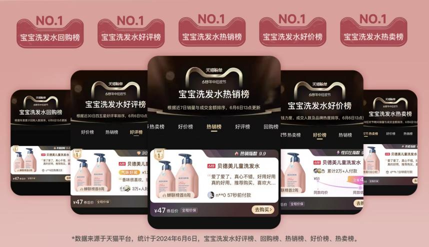 得益于严谨的品牌态度,贝德美收获了广大消费者的“芳心”,其市场表现强劲。公开数据显示,截至2025年9月,据统计贝德美蓝甘菊洗发水单品累计销量超4200万,创下连续8周霸榜电商平台热销TOP1的纪录。